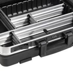 - ein robuster Aluminiumrahmen mit StoĂźkantenschutz schĂĽtzt das Werkzeug und den Koffer