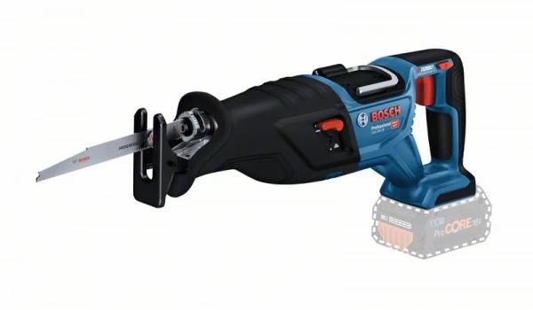 Akku-Säbelsäge BITURBO GSA 18V-28. Dank der neuen BITURBO Brushless-Technologie bietet die GSA 18V-28 maximale kabelfreie Schnittleistung, die der einer kabelgebundenen 1.100-W-Säbelsäge entspricht. Die werkzeuglose Schnappfunktion erlaubt leichtes, einhändiges Einführen und Entnehmen des Sägeblatts. Die GSA 18V-28 bietet ein ausgezeichnetes Verhältnis zwischen Leistung und Gewicht, deshalb ist das Arbeiten mit ihr in jeder Position einfacher und ermüdungsfreier. Die GSA 18V-28 ist ideal für Abrissarbeiten mit verschiedenen Materialien wie Metall, Holz, Kunststoff und Dämmmaterialien. Sie ist kompatibel mit dem Bosch Professional 18V System. Die GSA 18V-28 hat die perfekte Bauweise für wandnahe, von oben ausgeführte Schnitte. Ihr ergonomisches Design beinhaltet einen gebogenen oberen Griffteil, der mehrere Greifpositionen bequem ermöglicht. Die Hubzahl lässt sich einfach und stufenlos über den Ein-/Aus-Schalter einstellen. Die Säbelsäge ist ausgestattet mit einem einhängbaren Aufhängehaken für ausbalanciertes Aufhängen des Werkzeugs. L-BOXX 238 (1 600 A01 2G2); 2 x Akku ProCORE18V 5.5Ah (1 600 A02 149); Schnellladegerät GAL 1880 CV (1 600 A00 B8G); 1 x Säbelsägeblatt S 2345 X, Progressor for Wood (separat erhältlich als 2er-Pack: 2 608 654 403); 1 x Säbelsägeblatt S 123 XF, Progressor for Metal (separat erhältlich als 2er-Pack: 2 608 654 416)