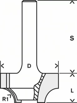 Bosch Kantenformfräser E, 1/4 Zoll,R1 6,3 mm,D 25,4 mm,L14 mm,G 46 mm 2608628424