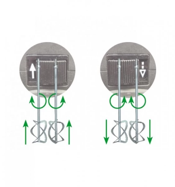 – Zwei gegenläufige Rührquirle – kein Rückdrehmoment, leichte Handhabung, Kraft- und Zeitersparnis