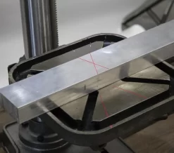 2. Ankörnen: Bohrstelle durch Anreißen mit einer Reißnadel markieren. Einen gehärteten Körnerstift ansetzen und Bohrstelle mit einem kurzen Hammerschlag ankörnen – so kann der Bohrer nicht abrutschen. Bei HSS-Bohrern mit Kreuzanschliff kann das Ankörnen entfallen. Bei großen Bohrdurchmessern mit kleinerem Bohrer vorbohren.