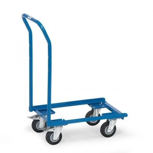 Offene Winkelstahlkonstruktion mit RohrschiebebĂŒgel, pulverbeschichtet blau RAL 5007. 4 Lenkrollen mit Vollgummi-Bereifung, Naben mit Rollenlager. 2 StĂŒck mit Feststeller, gemÀà der EuropĂ€ischen Norm EN 1757-3. Passend fĂŒr EurokĂ€sten 600 x 400 mm. Zerlegte Anlieferung. Die Stirnseite des Rahmens gegenĂŒber dem SchiebebĂŒgel ist offen (ohne Kante), wodurch KĂ€sten auf- und abgezogen werden können.
