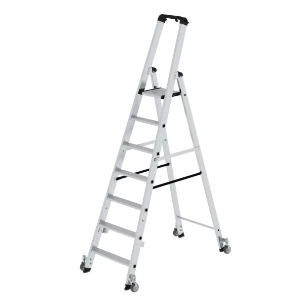 Aluminium-Stehleiter einseitig begehbar,mit Rollen 1 x 7 Stufen, Artikel-Nr: 041107