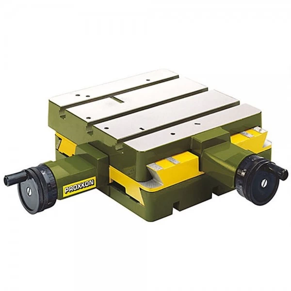 Zum Nuten, FrĂ€sen von Automatenstahl, NE-Metall, Kunststoff und Holz. Jede Bahn mit Feststellvorrichtung. FĂŒhrungen spielfrei nachjustierbar. Verstellung durch 2 StellrĂ€der mit justierbarer 0-Position. 1 Umdrehung = 2 mm Vorschub. 1 Teilstrich = 0,05 mm Vorschub. PlangefrĂ€ste ArbeitsflĂ€che. Drei durchgehende T-Nuten nach MICROMOT-Norm (12 x 6 x 5 mm). Ein Anschlag mit vorgegebenen Passungen (auch fĂŒr 45°), Befestigungsschrauben und eine Zwinge gehören dazu. ArbeitsflĂ€che 200 x 200 mm. Hub maximal 150 x 150 mm. Bauhöhe 75 mm. Gewicht 4,9 kg.