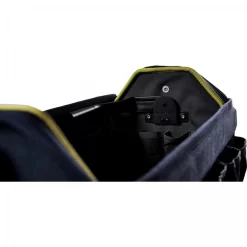 Der inkludierte, ergonomische Schultergurt ist abnehm- und verstellbar. Der Boden der Werkzeugtasche ist so gestaltet, dass die Werkzeugtasche auf raaco CarryMore-Tragerahme platziert werden kann.