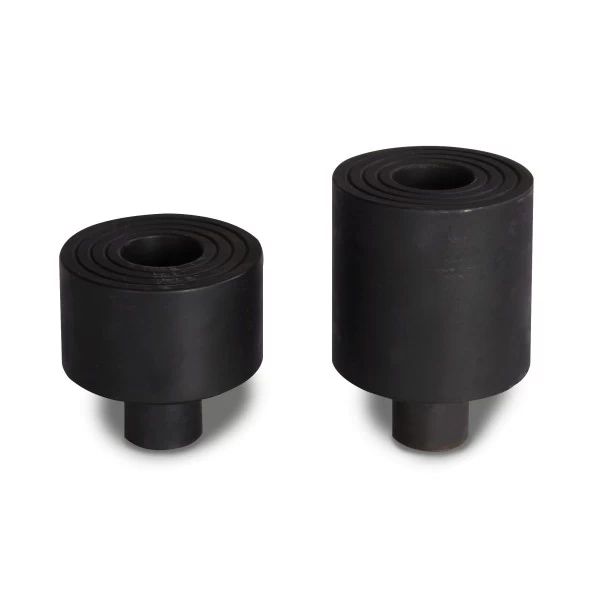 - Die beiden Gusseisen-Aufsatzstücke können für die Erweiterung der Hubhöhe einzeln oder auch aufeinander aufgesteckt verwendet werden