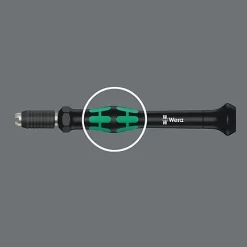 Kraftform Kompakt Micro-Set für feinmechanische Anwendungen; geeignet für die Aufnahme von Bits mit 4 mm Halfmoon-Antrieb (Wera Reihe 9) und Bits mit 4 mm HIOS-Antrieb (Wera Reihe 21); Griff-/Wechselklingen-System für blitzschnellen Klingenaustausch; Kraftform Micro Griff mit drehbarer Kappe und Schnelldrehzone für blitzschnelles Zwirbeln; kein zeitintensives Umgreifen mehr nötig; Kraftzone mit integrierten Weichzonen zur Übertragung hoher Löse- und Anzugsmomente; Präzisionszone direkt über der Klinge für den richtigen Drehwinkel bei Justierarbeiten; mit 10 Bits für hand- und maschinenbetätigte Verschraubungen; blitzschnelle Bit-Fixierung: Bit einfach in die Aufnahme schieben, selbsttätige Verriegelung, sicherer Sitz. Zum Bitwechsel Hülse einfach nach vorne schieben und Bit entnehmen; freilaufende Betätigungshülse zur einfachen Führung des Werkzeugs während des Schraubvorgangs.