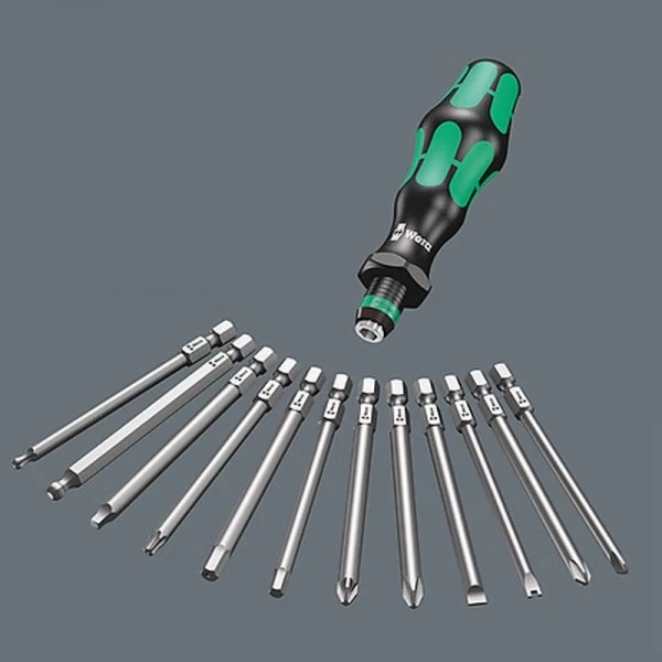 – 1x Kraftform Kompakt 62, 33-teilig; 1x 816 R Bits-Handhalter mit Rapidaptor Schnellwechselfutter: 1/4″x119; 3x 851/4 Z Bits: PH 1×89, PH 2×89, PH 3×89; 3x 855/4 Z Bits: PZ 1×89, PZ 2×89, PZ 3×89; 8x 867/4 Z TORX® BO Bits mit Bohrung: TX 8×89, TX 10×89, TX 15×89, TX 20×89, TX 25×89, TX 30×89, TX 40×89, TX 27×89; 6x 840/4 Z Bits Hex-Plus BO: 2.0×89, 2.5×89, 3.0×89, 4.0×89, 5.0×89, 6.0×89; 1x 800/4 Z Bits: 1.2×6.5×89; 3x 871/4 TORQ-SET® Mplus Bits: 10×89, 6×89, 8×89; 4x 875/4 TRI-WING® Bits: 1×89, 2×89, 3×89, 4×89; 4x 857/4 Z Spanner Bits: 4×89, 6×89, 8×89, 10×89; 1x Klettstreifen 70: 50.0×70.0