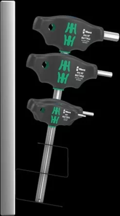 Quergriff-Schraubendreher: Die ideale Griffform ermöglicht die Übertragung besonders hoher Anzieh- und Lösemomente. Die ergonomische Form des Griffs füllt den Handballen gut aus, die Finger liegen sicher in den weich gerundeten Griffmulden. Die ganze Hand findet Kontakt zum Griff und Reibungsverluste zwischen Hand und Griff werden vermieden. Mit Haltefunktion zum sicheren Halt der Innensechskant-Schraube auf dem Werkzeug. Spezielle Oberflächenvergütung für hohen Korrosionsschutz und optimale Passgenauigkeit in der Schraube. Inklusive Metallrack zur Aufbewahrung. Das Rack kann auf die Werkbank gestellt oder in die Werkzeugwand gehängt werden.