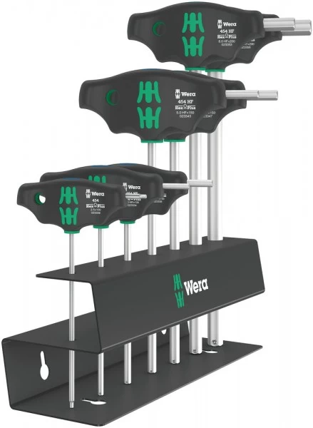 – 1x 454/7 HF Set 2 Schraubendrehersatz Quergriff-Schraubendreher Hex-Plus mit Haltefunktion, 7-teilig; 1x 454 Quergriff-Sechskantschraubendreher Hex-Plus: 2.5×100; 6x 454 HF Quergriff-Sechskantschraubendreher Hex-Plus mit Haltefunktion: 3×100, 4×100, 5×150, 6×150, 8×200, 10×200; 1x 9604 Metallrack für Quergriff Schraubendreher: 214.0×78.0