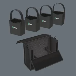 1 formstabiler, robuster Werkzeug-Container für bis zu 4 Wera 2 go 4 Köcher; mit Klettsystem zum Ankletten von weiteren Wera 2go-Komponenten und textilen Wera Boxen und Taschen mit Klettzone, hohe Schnitt- und Stichresistenz, 1 Tragegriff und 1 Schulter-Tragegurt mit verschiebbarer breiter Polsterung, in der Länge einstellbar, abnehmbar; inklusive 1 entnehmbarer Köcher mit Tragegriff.